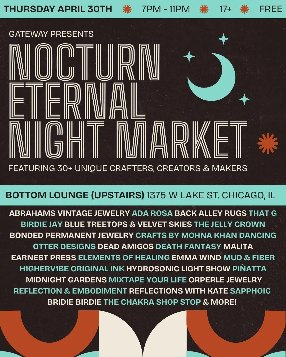 A Night Market for Night Owls, featuring ~30 local artists, makers & creators, located upstairs at Bottom Lounge!